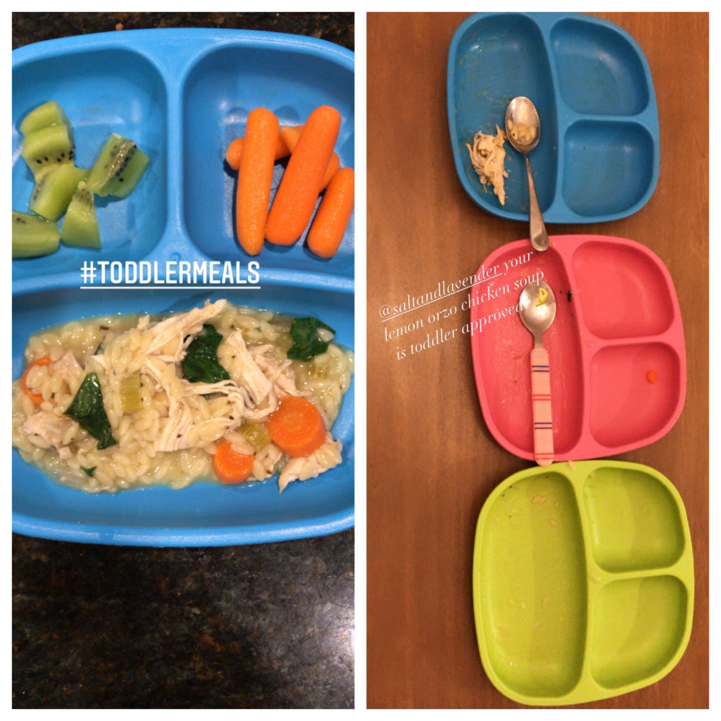 Potential mix-ins: spinach, riced veggies, cheese, broccoli, your favorite fresh herb. I added fresh thyme when I had it on hand and it was delicious! The twins love helping me cook, so recently I got them this toddler knife set. I’ve been giving them spinach to practice cutting, and have been adding it to everything. It was a delightful little mix in. The kids felt accomplished that they helped, and they ate it all in the soup. Win, win!
